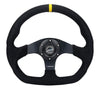 NRG Reinforced Steering Wheel (320mm) Sport Leather Flat Bottom w/ Yellow Center Mark