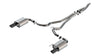 This 2.5" diameter BORLA Cat-Back system is designed for use on EcoBoost cars WITHOUT the Active Exhaust feature. It features the classic S-Type sound with no drone inside the vehicle and 4" carbon fiber with black anodized center tips. Systems with bright chrome on T-304 stainless steel, and black chrome on T-304 stainless steel tips are also available. BORLA Cat-Back and Axle-Back exhaust systems feature patented straight-through and multi-core technology designed to unleash hidden horsepower. Increased exhaust velocity adds power, driving excitement, fuel economy, and the distinctive BORLA Sound of Power respected by motoring enthusiasts everywhere. Each system is built from premium T-304 stainless steel, superior to T-400 series knockoffs (such as 409), to give you the absolute best in performance and durability. Ultra-smooth mandrel bends ensure maximum flow & power, and precision computer numerical control (CNC) manufacturing ensures an accurate fit. Best of all, BORLA stands behind every system with a Million-Mile Warranty. Just what you'd expect from the world's most experienced (and most winning) exhaust brand.