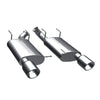 The MagnaFlow 2011-2012 Ford Mustang Race Series Axle-Back Performance Exhaust System 15596 doesn't leave any performance on the table with a race-ready, light weight, dyno-proven design ready to help your 3.7L 2011-2012 Ford Mustang take on any pretenders, whether on the track or the street. Exhaust kit 15596 is engineered to produce our powerful, resonant signature exhaust note at Very Aggressive exterior and Aggressive interior sound levels with an axle-back layout that replaces your vehicle's exhaust components from near the rear axle on back. Please check to ensure compliance with local noise regulations. This Ford Mustang exhaust kit features fast-flowing mandrel bent 2.5in. diameter main piping that ends in a Dual Split Rear exit with 4in. Polished Welded-On Double Wall Angle Cut Rolled Edge tips. Extensive 3D scanning during development and the use of advanced CNC precision robotic manufacturing techniques ensures that 15596's direct-fit design fits so perfectly that you can easily install the system yourself. The durable, corrosion resistant stainless steel construction of exhaust system 15596 is backed by MagnaFlow's limited lifetime warranty.