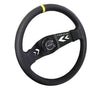 NRG Reinforced Steering Wheel (350mm / 3in. Deep) Blk Suede w/NRG Arrow Cut 2-Spoke & Yellow Mark