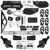 Take to the streets with a hardcore look that's loud & proud. The N-FAB HVM Bull Bar features a modular design that fits tight to the OE bumper with a matte black powder coat finish that complements the factory trim. Muscular steel primary uprights mount directly to the frame adding the structural strength needed to anchor the fully-integrated dual recovery hooks. With forged aluminum construction, these massive shackle mounts prepare you to handle any rescue mission, on-road or off, with a look that owns the road. Across the top, a boxed steel overrider carries on the HVM Bull Bar's angular appearance while adding vital protection for the grille and radiator. Inside the raised hoop, a recessed light bar mount provides the perfect place to mount most any manufacturer's 20 in. LED Light Bar (sold separately), so it's easy to add discrete yet effective illumination. Additionally, since road hazards come from every angle, the HVM Bull Bar employs an aluminum skid plate with a contrasting gloss finish adding crucial front-end protection with a modern styling sure to accentuate your truck's rugged appearance.