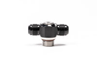 This adapter fitting threads into a 10AN ORB port. Two 10AN male fittings are then available for attaching hoses to. The black portion swivels 360 degrees. Compatible with all fluids.